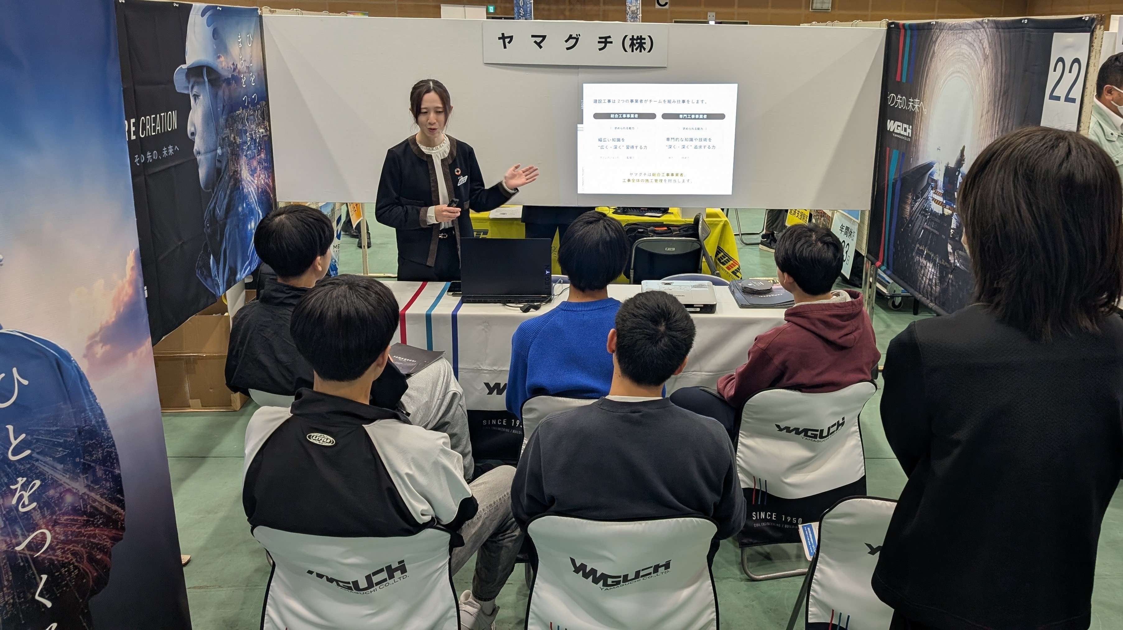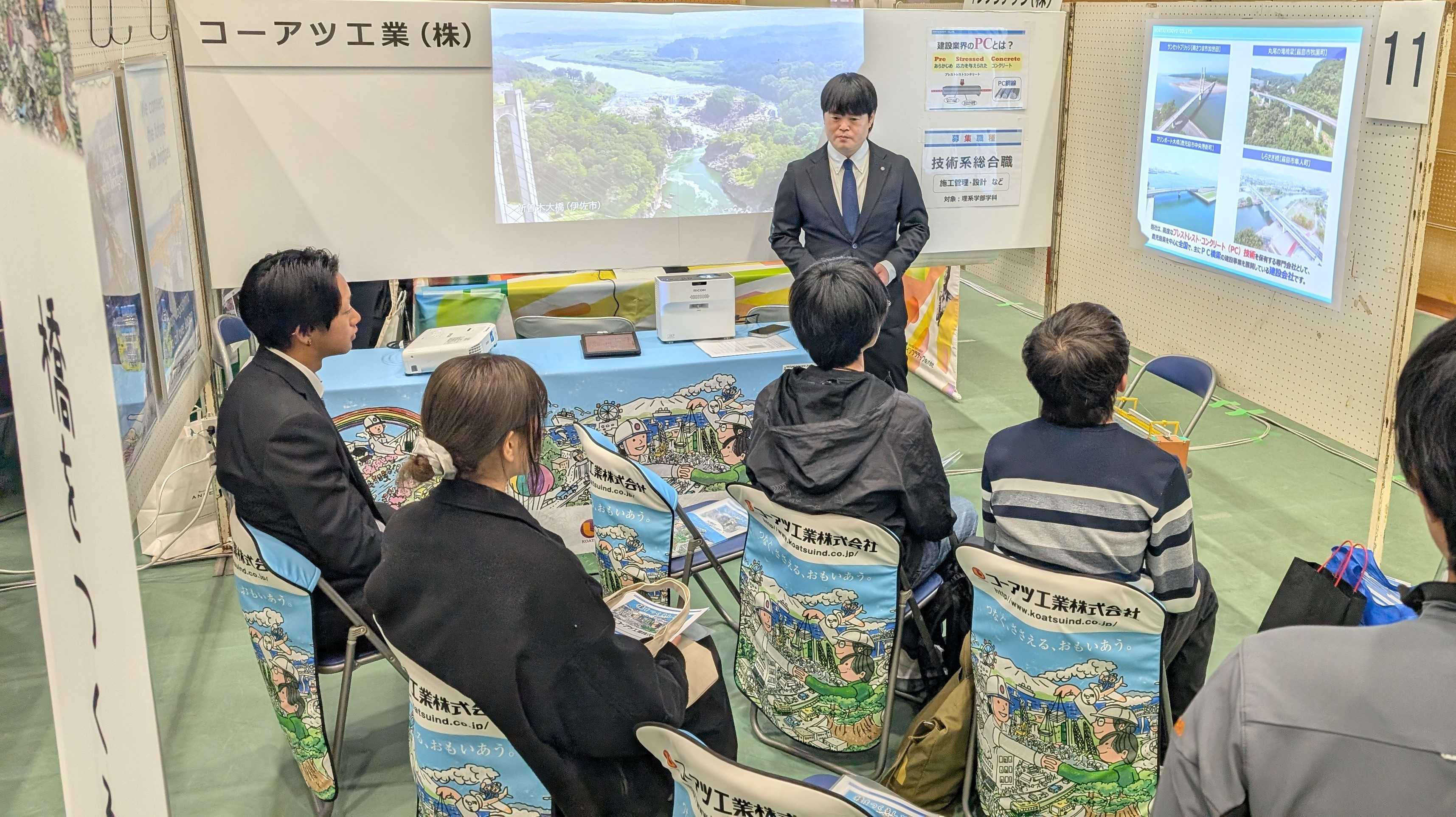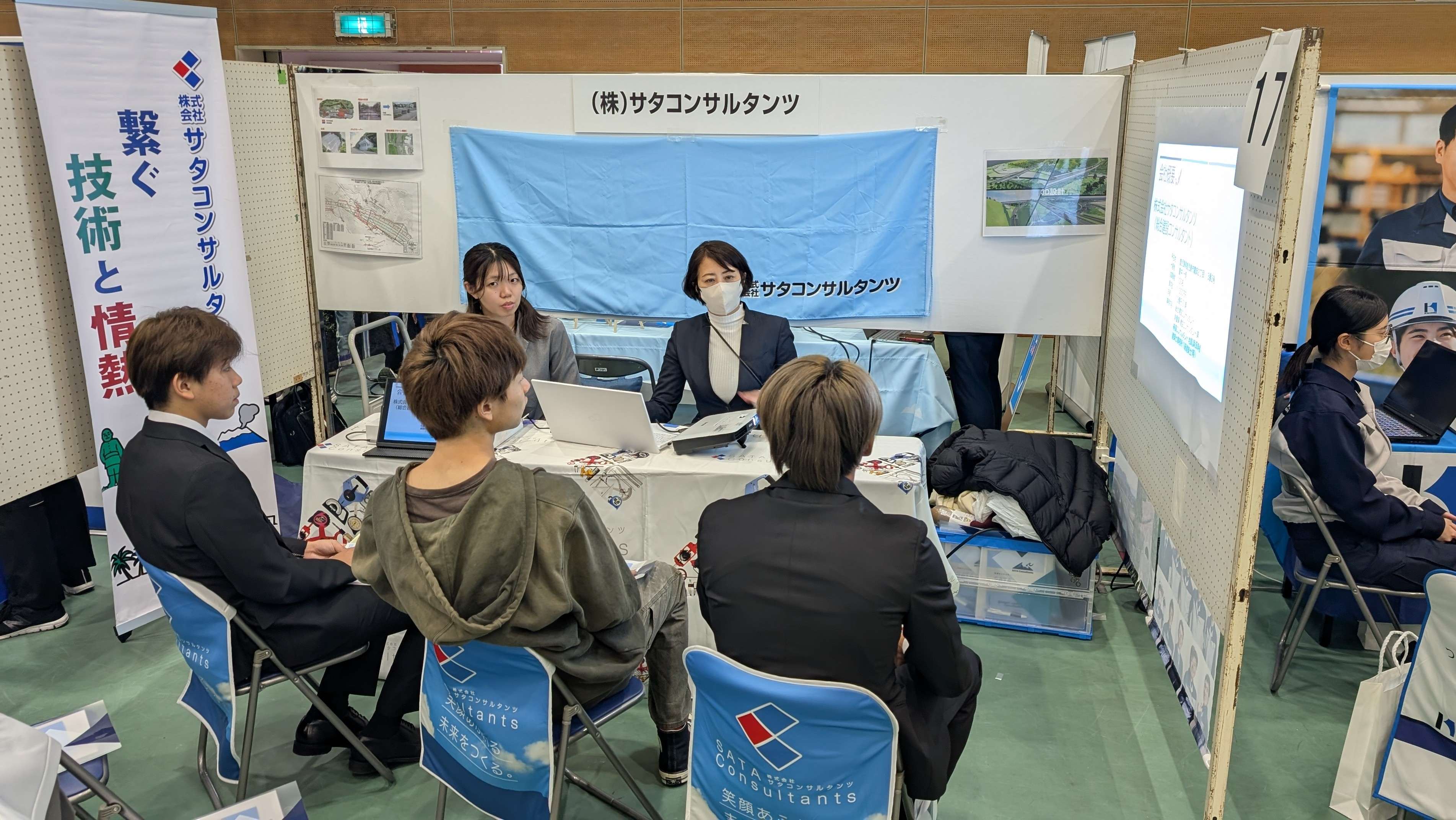 先生のお話では、今回79社がブース出展し、年々参加企業が増えているとのことで、多くの企業さんが「鹿児島高専生に会社を知ってほしい!」「採用したい!」と各社様々なPRをされていました。