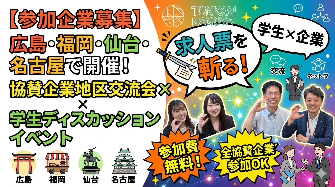 【参加企業募集】広島・ 福岡・仙台・名古屋で開催!協賛企業地区交流会×学生ディスカッションイベント