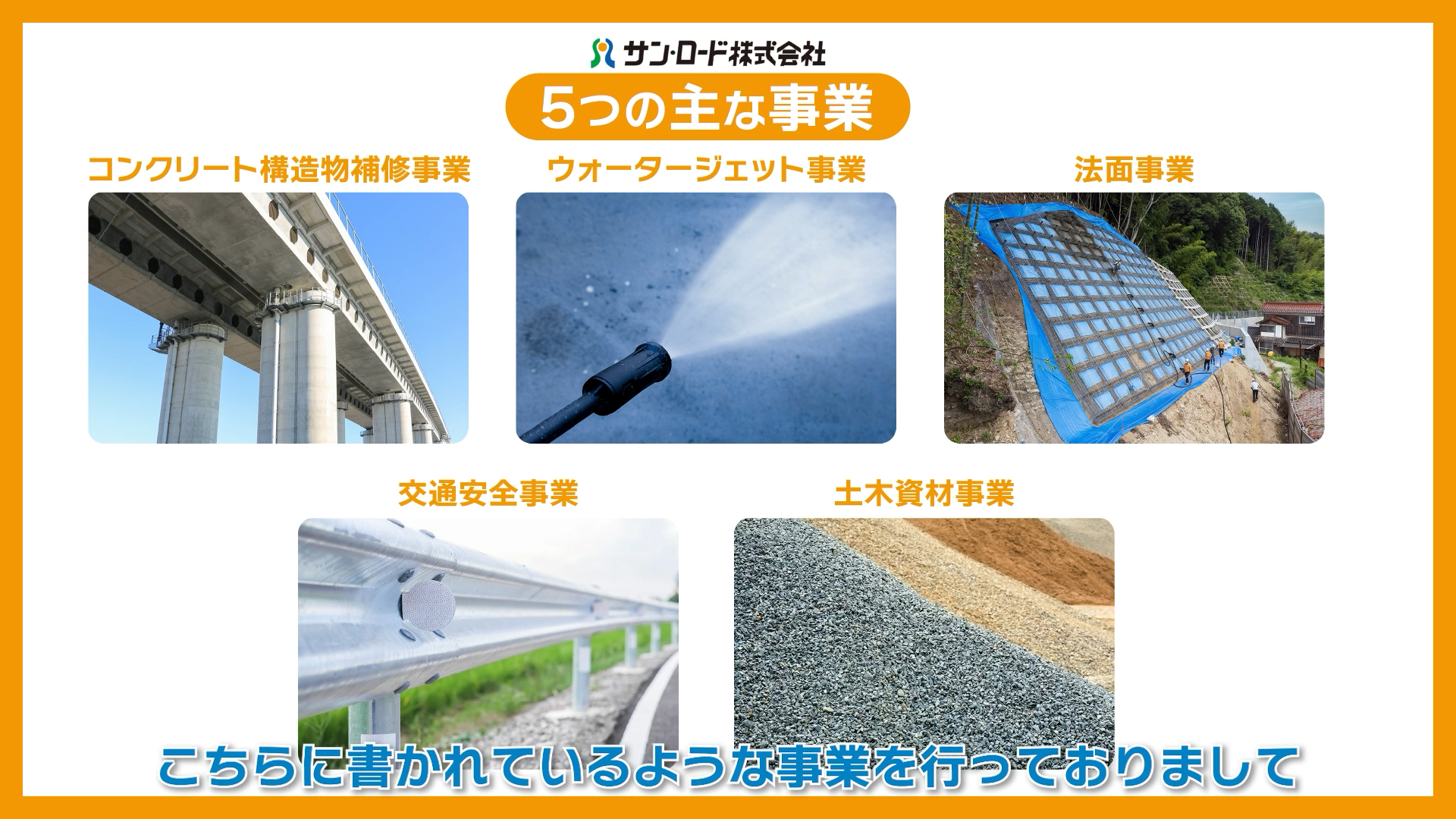 ■事業内容:コンクリート構造物補修事業、ウォータージェット事業、法面事業、交通安全事業、土木資材事業