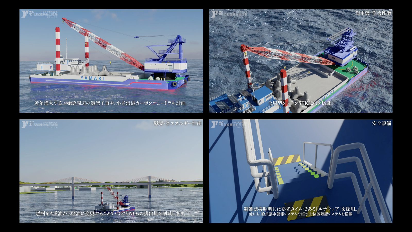 新型起重機船団造船プロジェクトの紹介映像。3D アニメーションにより船団および海をリアルに表現。3D アニメーションならではの自由なカメラワークで紹介。