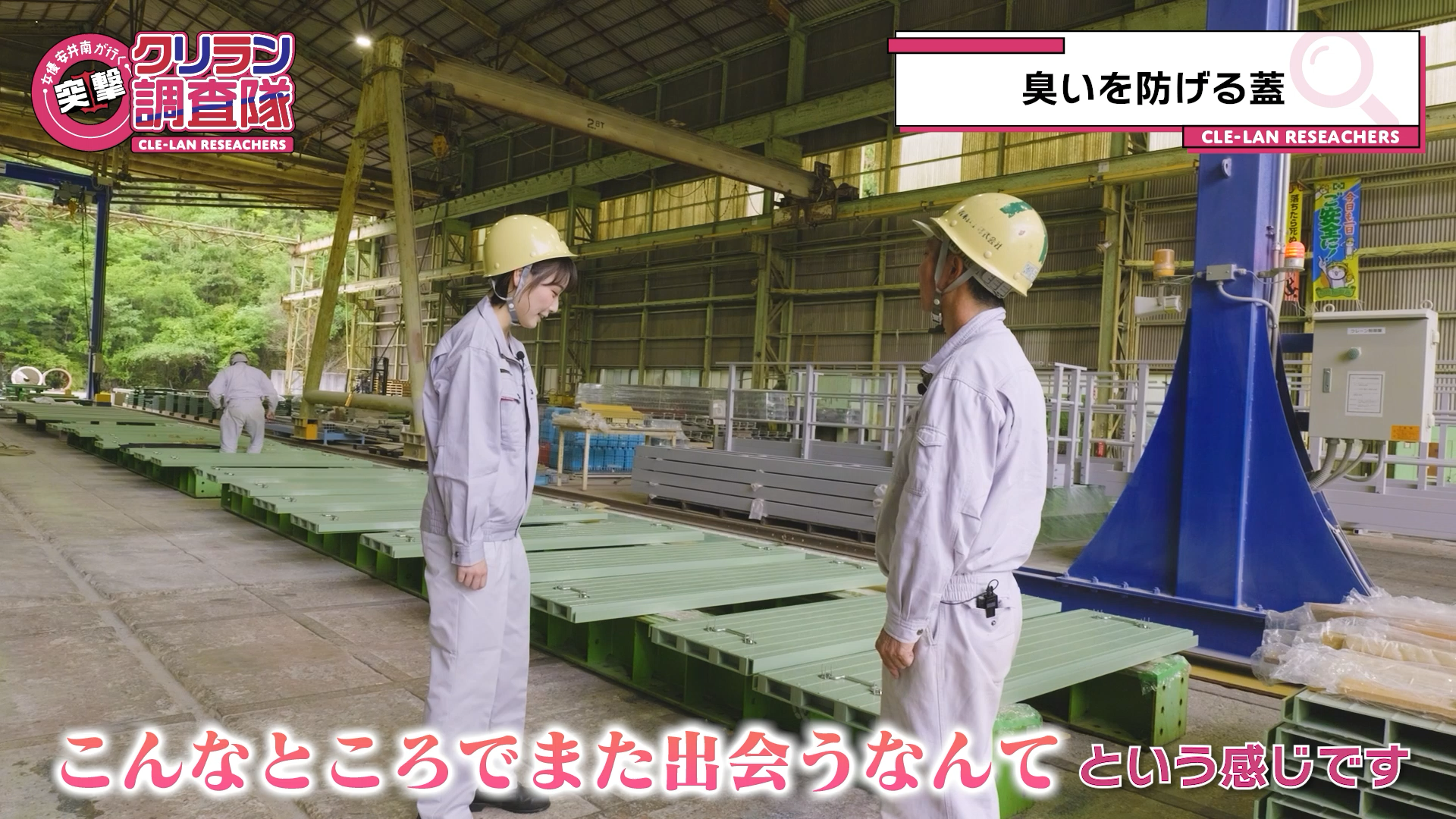 また、水の天使時代に一度出会ったことのある、水再生センターの初沈等で使用される蓋に再会することに!!安井さんが蓋のことを知っていることに、担当者の池田さんもびっくりでした(笑)
