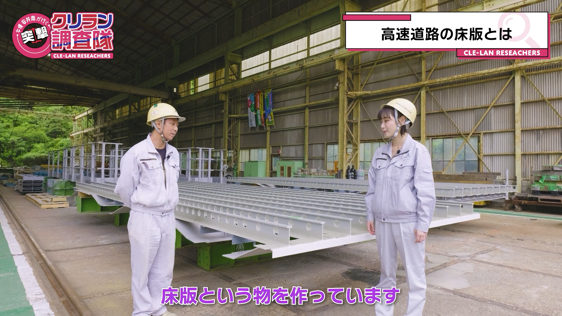 今度は相生南工場の方に移動して、FRP事業について池田さんにご紹介いただきました。高速道路の大規模更新で使われる床版や検査路の製造現場を見学!