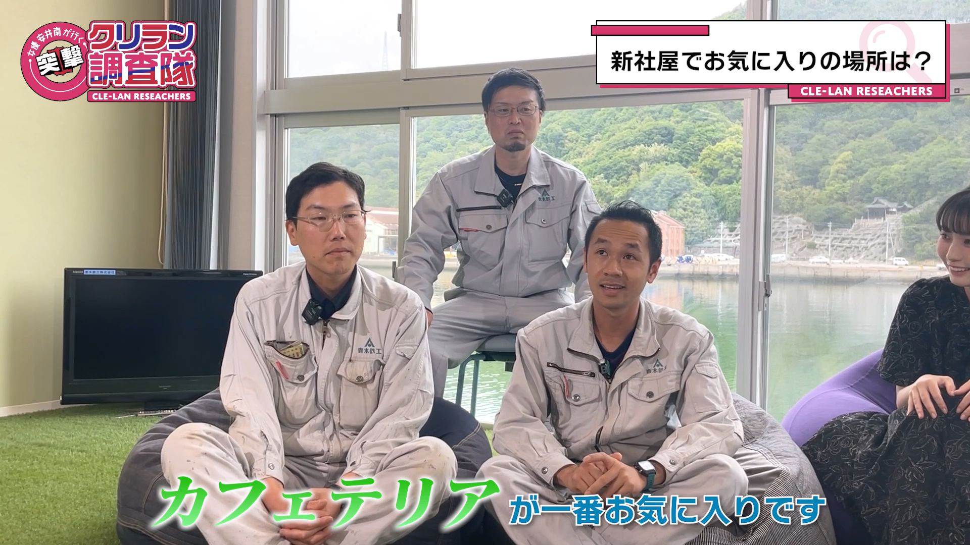 社員さんとの座談会では、青木鉄工の新社屋内にある「カフェテリア」にて撮影を行いました!