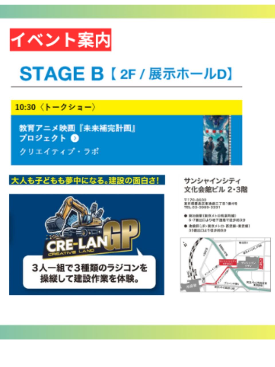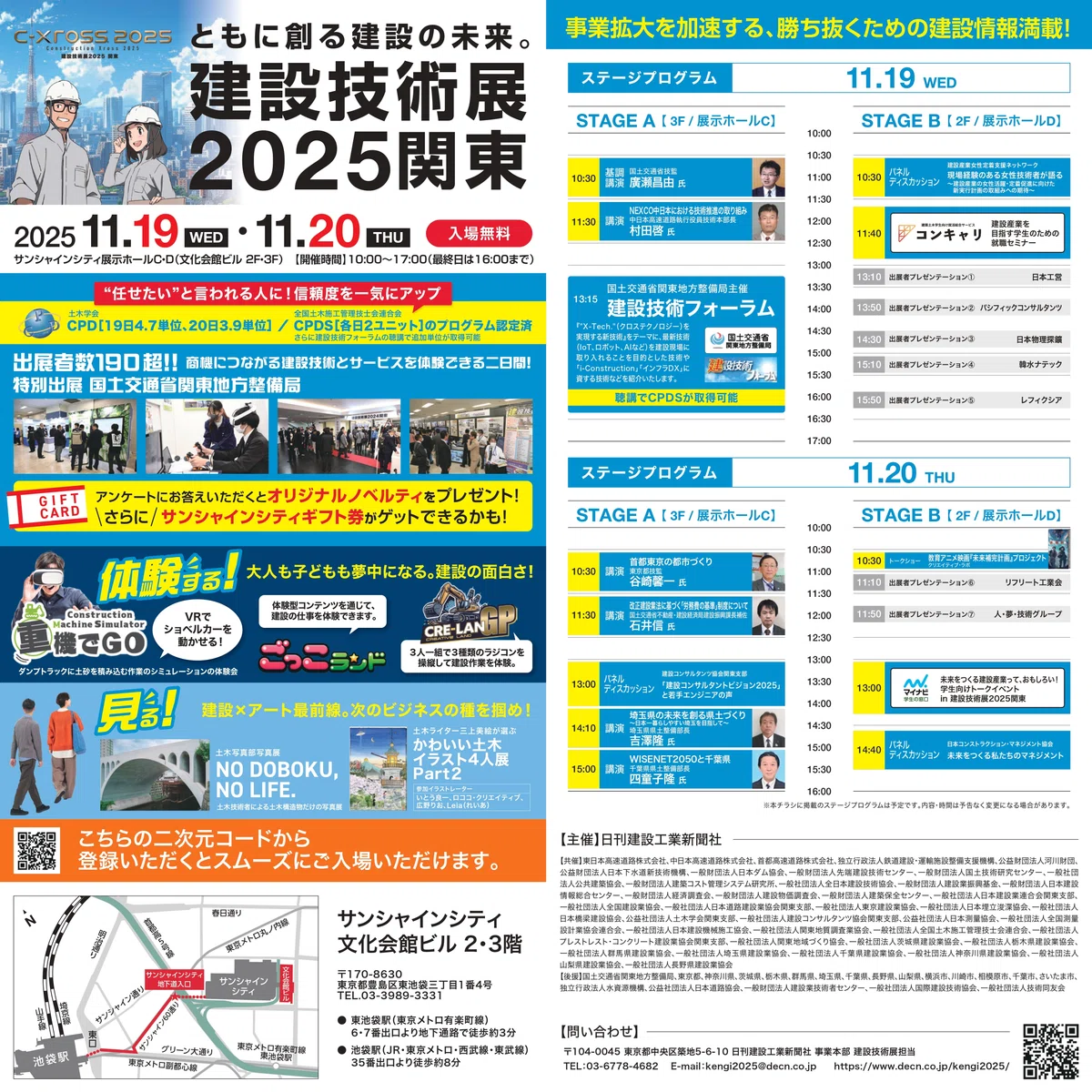 このたび、株式会社クリエイティブ・ラボは、日刊建設工業新聞社からお声かけいただき、2025年11月19日(水)11月20日(木)にサンシャインシティ文化会館ビル(池袋)にて開催される「建設技術展2025関東」のトークショーへ登壇、また実際にラジコン重機を操縦できる体験会を行います。