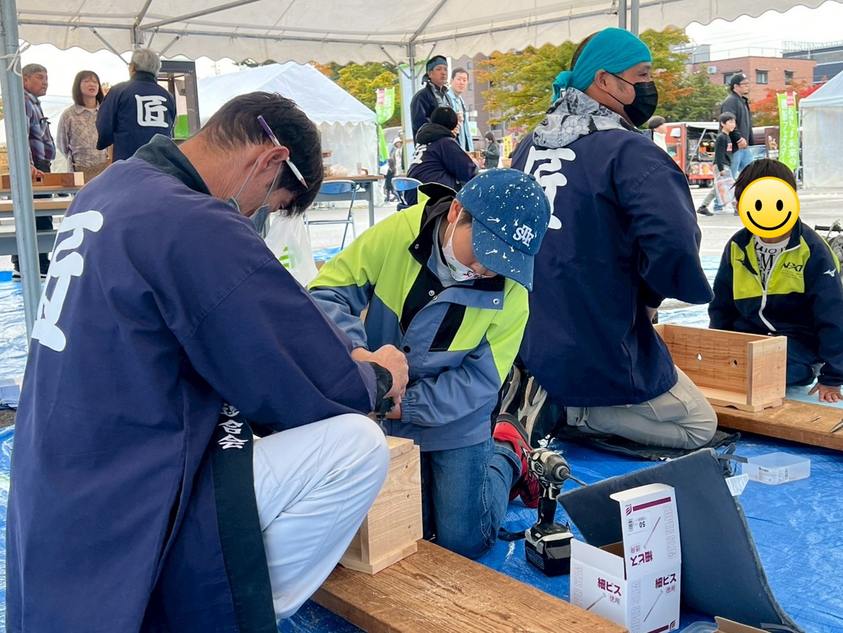 ・車両体験・大工さんと小さな家づくり体験・U事溝やきとり・お菓子の家作り体験・重機でGO など楽しい企画がいっぱいで多くの来場者に楽しんでいただけました。