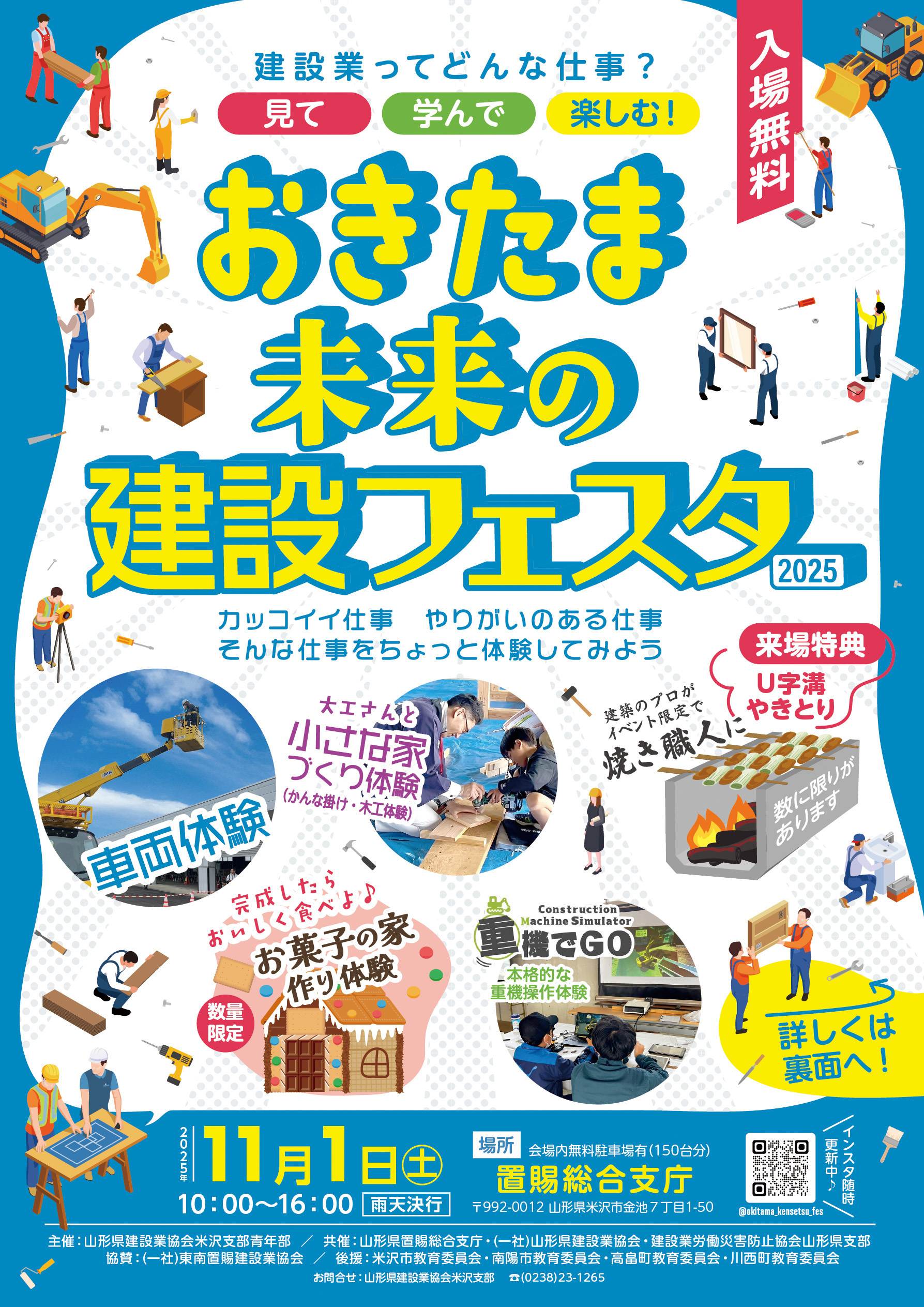 CREATIVE LANDプロジェクトに後援いただいている一般社団法人山形県建設業協会の米沢支部青年部主催で2025年11月1日(土)に置賜総合庁にて「おきたま未来の建設フェスタ!」が開催されました。