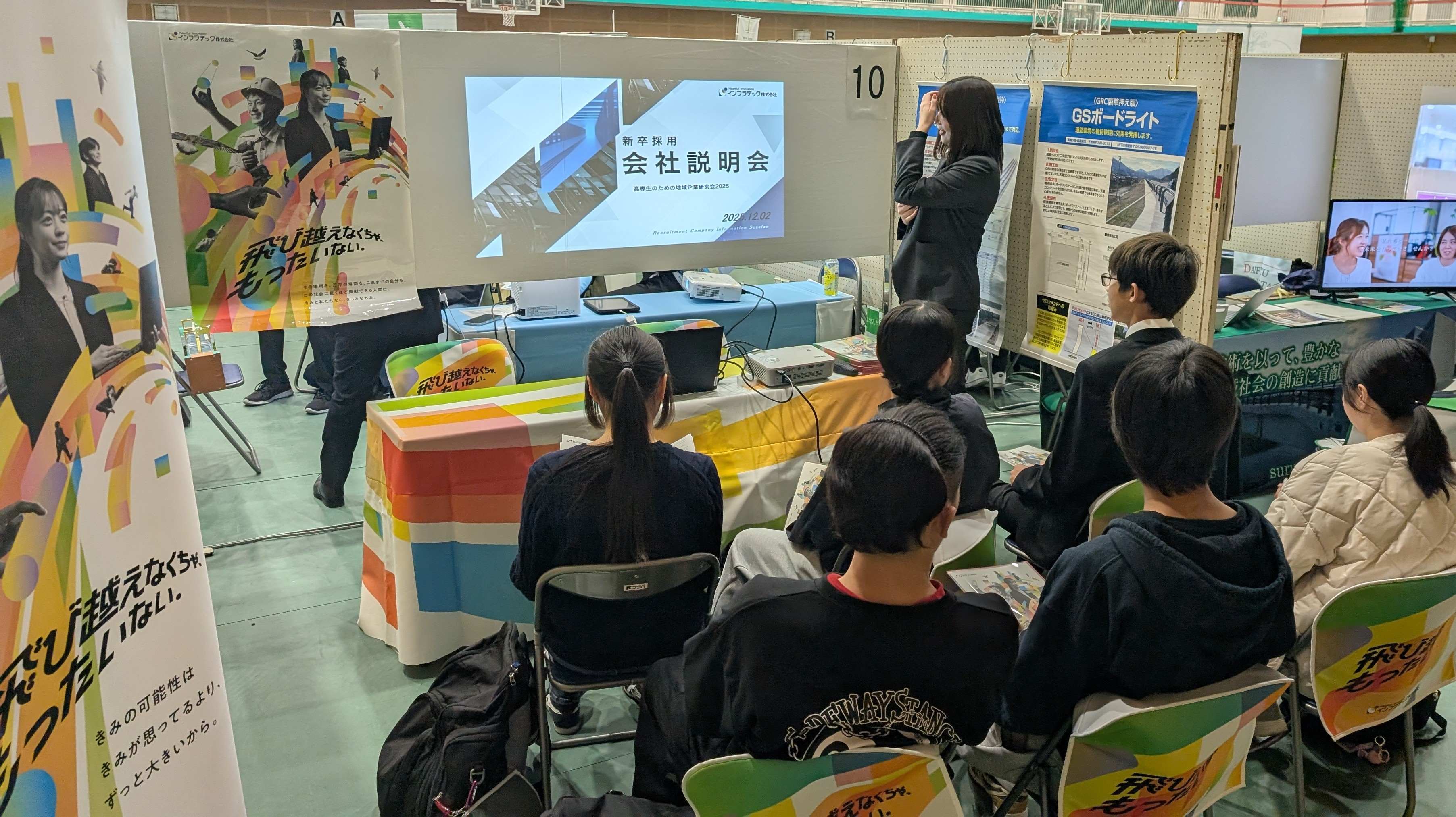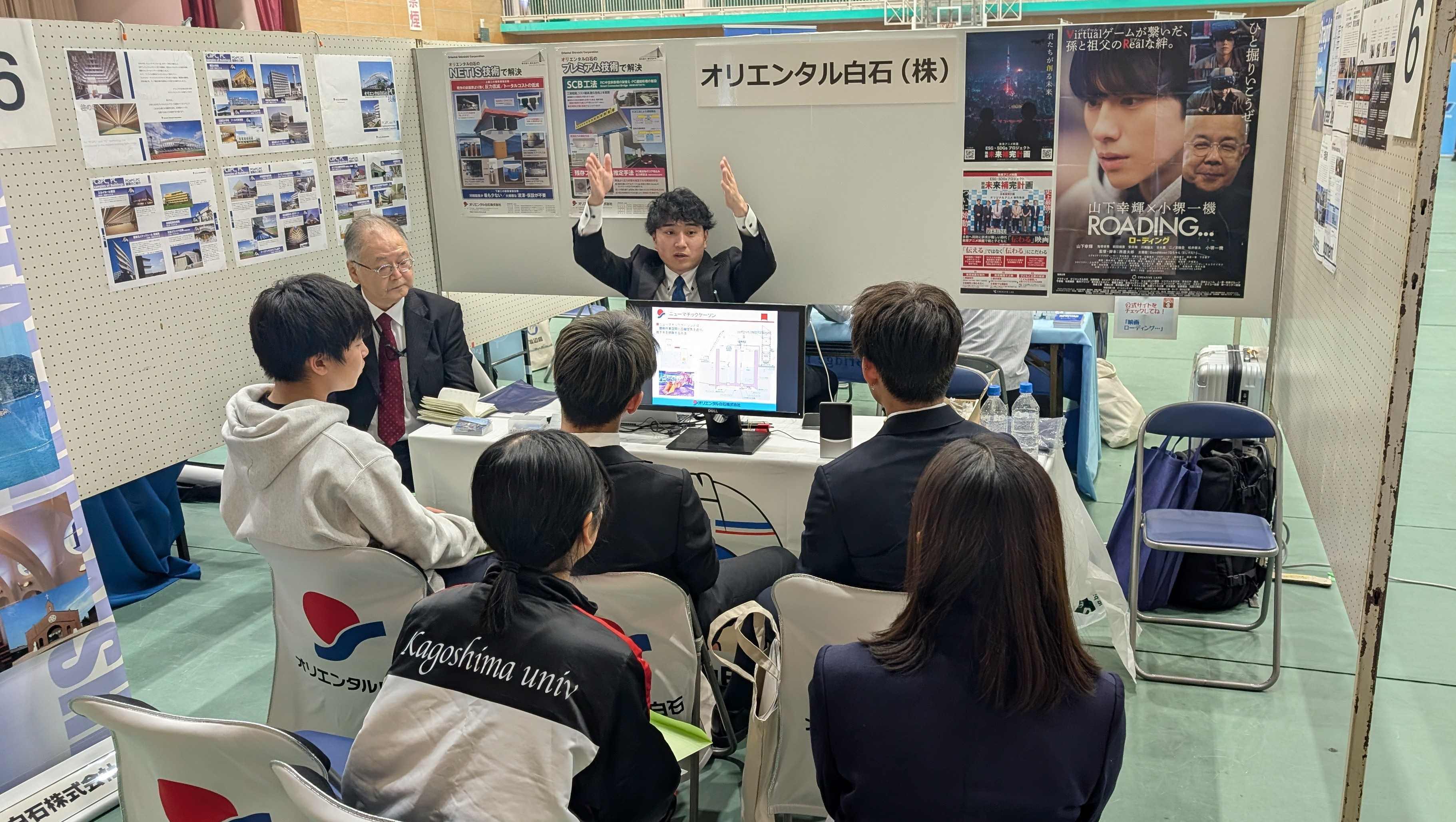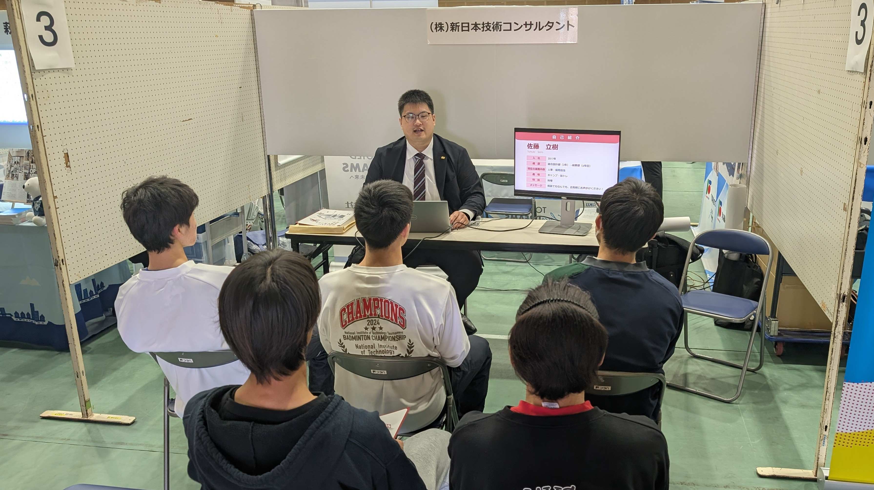 先生のお話では、今回79社がブース出展し、年々参加企業が増えているとのことで、多くの企業さんが「鹿児島高専生に会社を知ってほしい!」「採用したい!」と各社様々なPRをされていました。