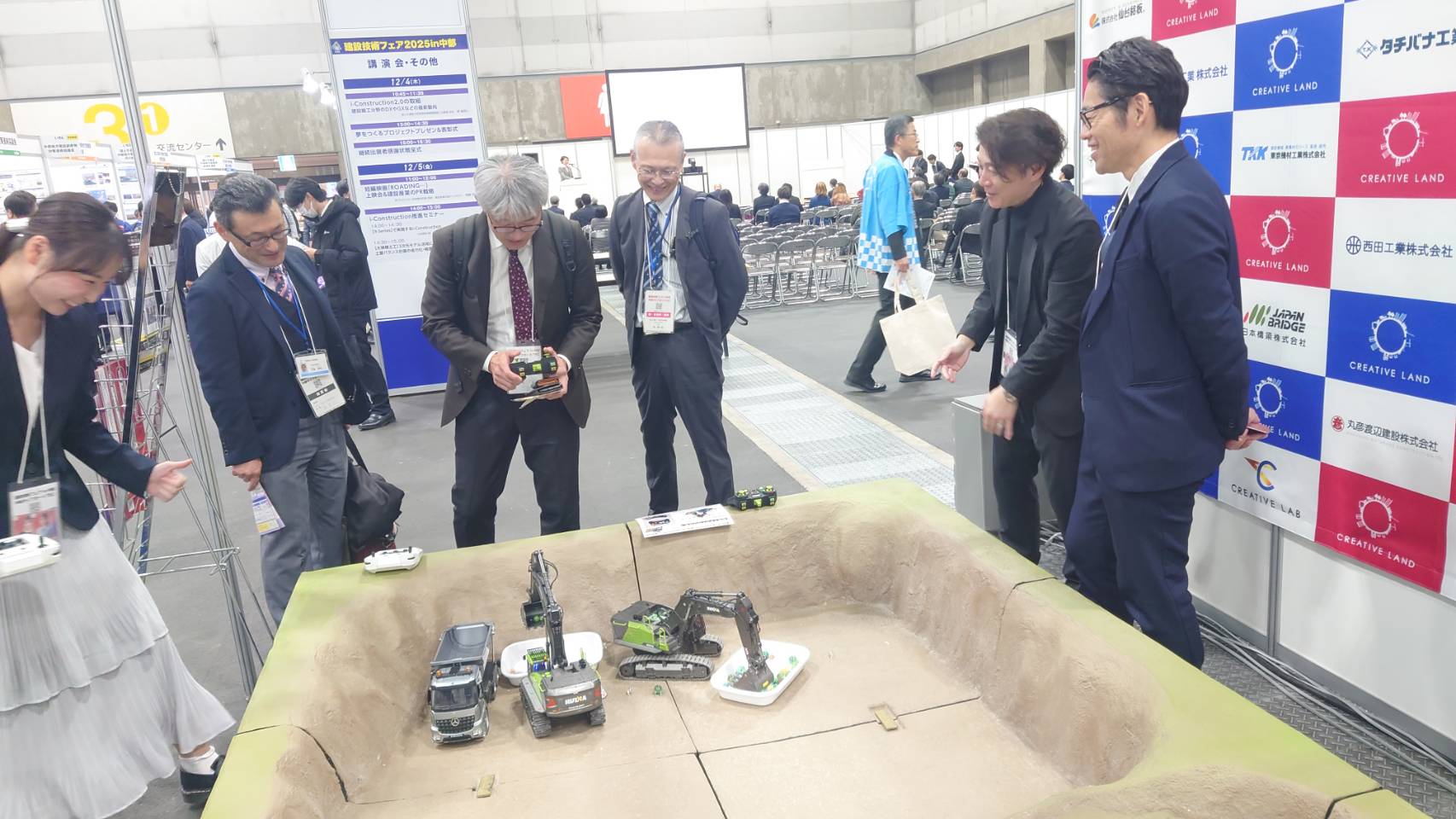 このたび、株式会社クリエイティブ・ラボは、国土交通省中部地方整備局からお声かけいただき、2025年12月4日(木)5日(金)にポートメッセ名古屋にて開催された「建設技術フェア2025 in 中部」で講演、映画上映、重機ラジコン体験を行いましたので、当日のイベントレポートをお送りします。