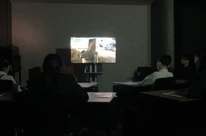 オフィス見学の後、クリエイティブ・ラボが2年前に制作した短編映画『ROADING...』を上映し、質疑応答や意見交換を行いました。