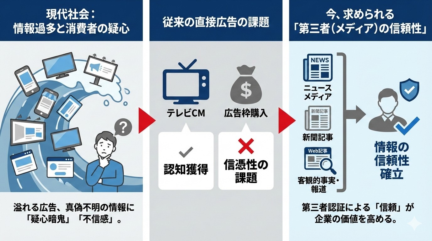 今、企業に求められているのは、第三者(メディア)によって報じられることで得られる「情報の信頼性」です 。