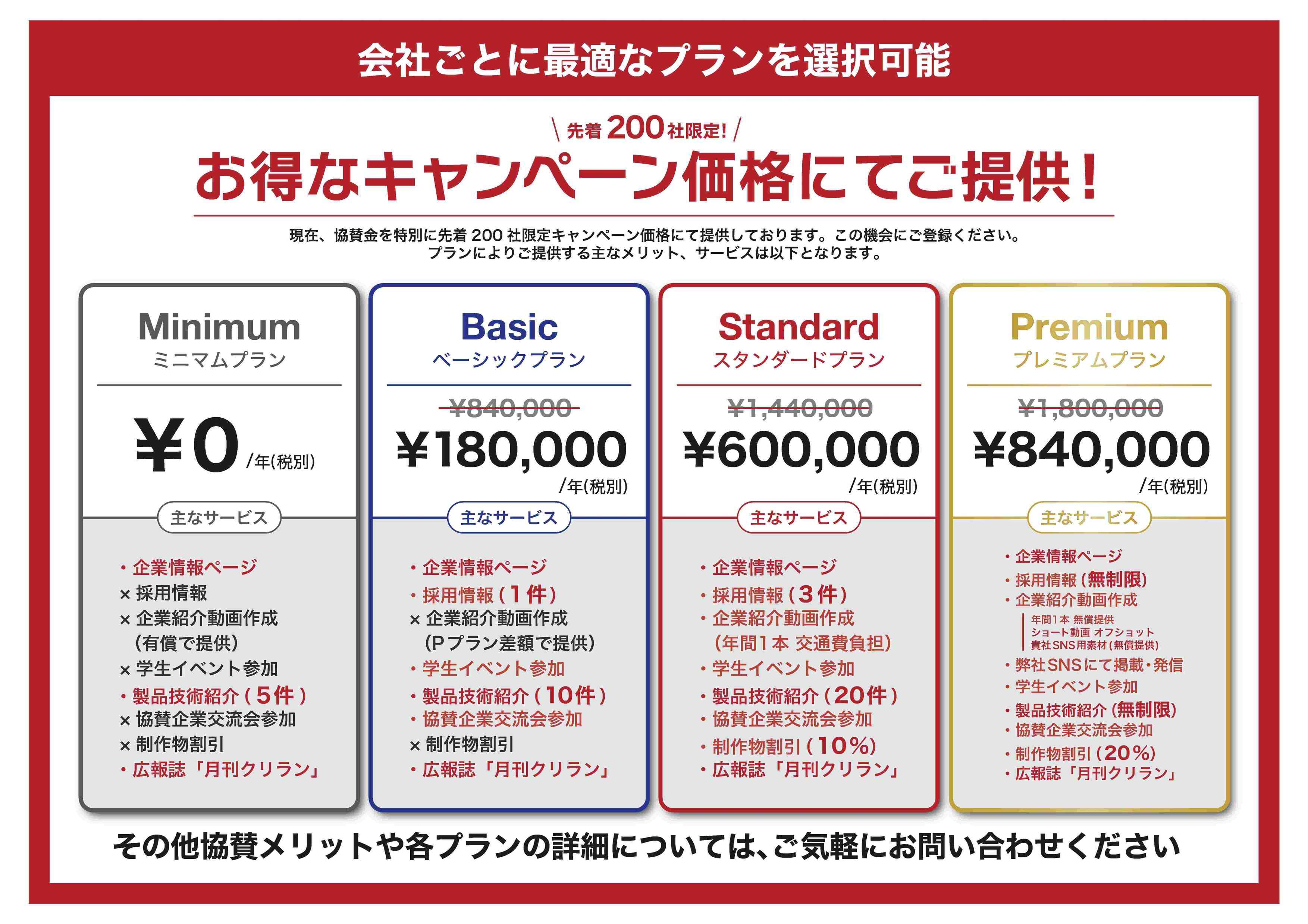 協賛プランには、無料から有料まであります。