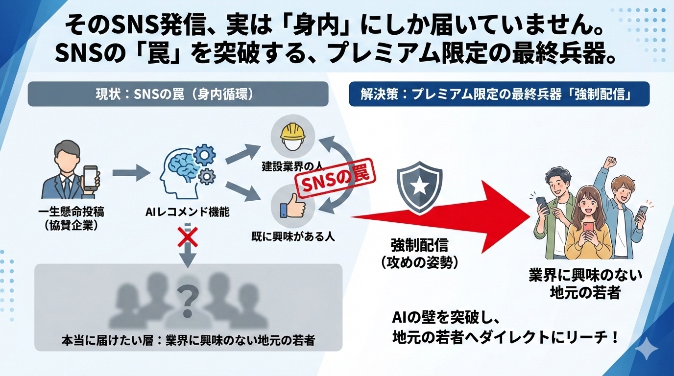そのSNS発信、実は「身内」にしか届いていません。SNSの「罠」を突破する、プレミアム限定の最終兵器。