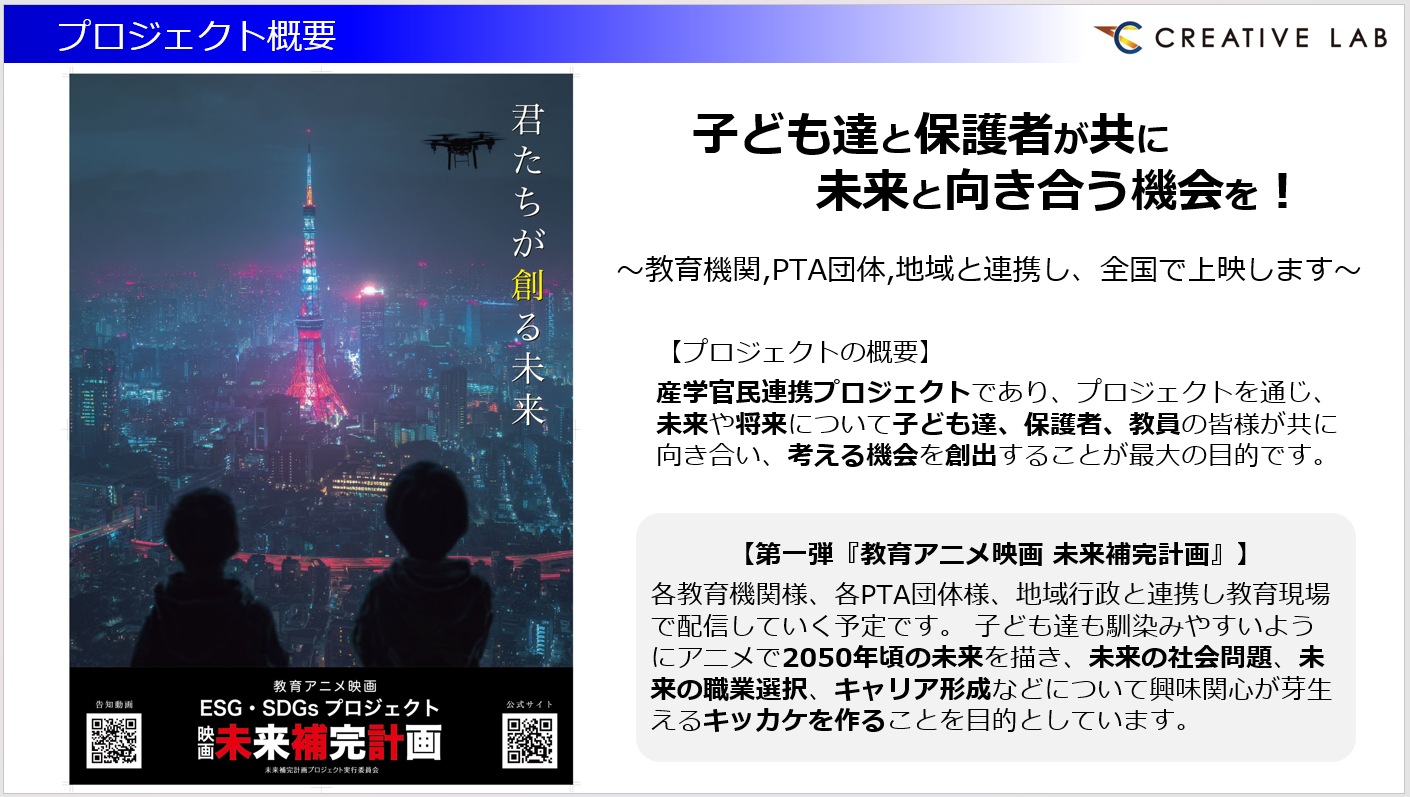 前半は「CREATIVE LANDプロジェクト」、後半は「未来補完計画プロジェクト」についてお話ししました。