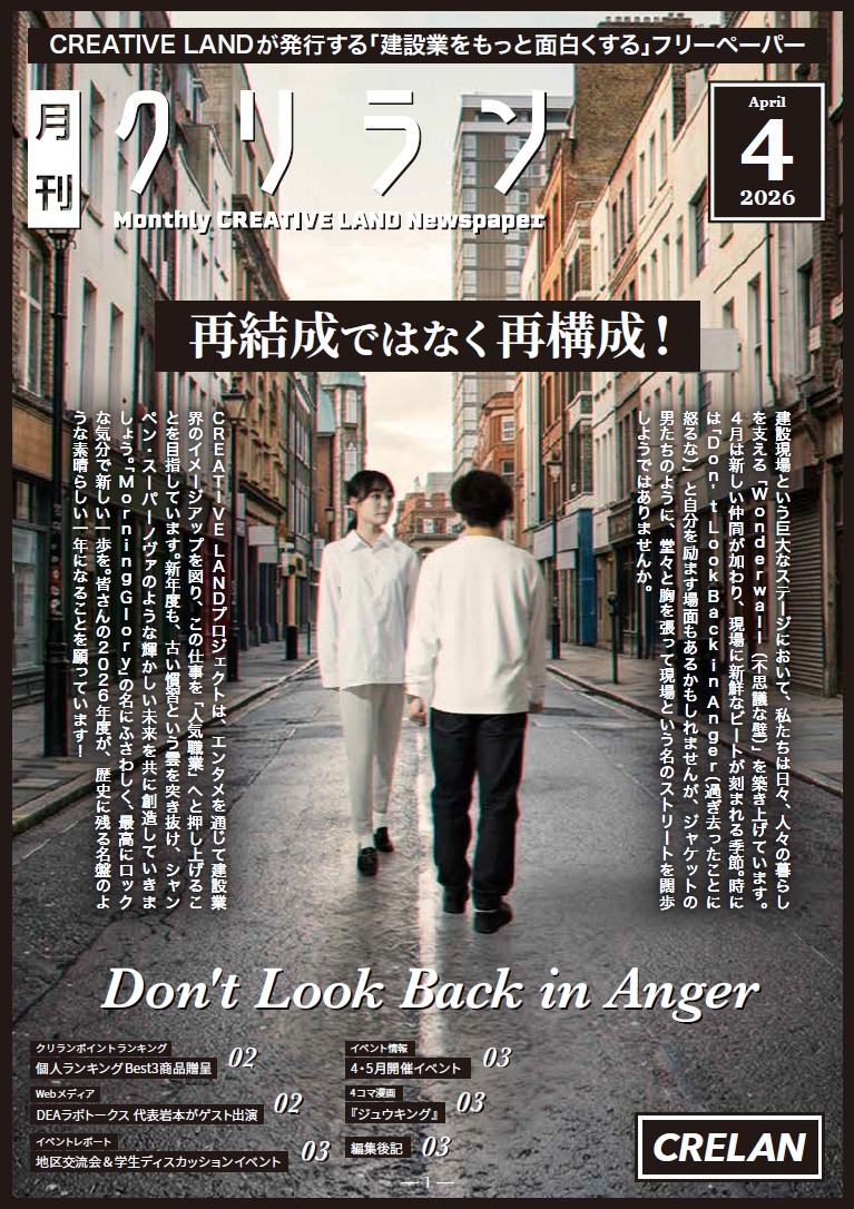 このたび、CREATIVE LANDDが発刊する「建設業をもっと面白くする」フリーペーパー『月刊クリラン』の最新号2026年4月号を紹介します!