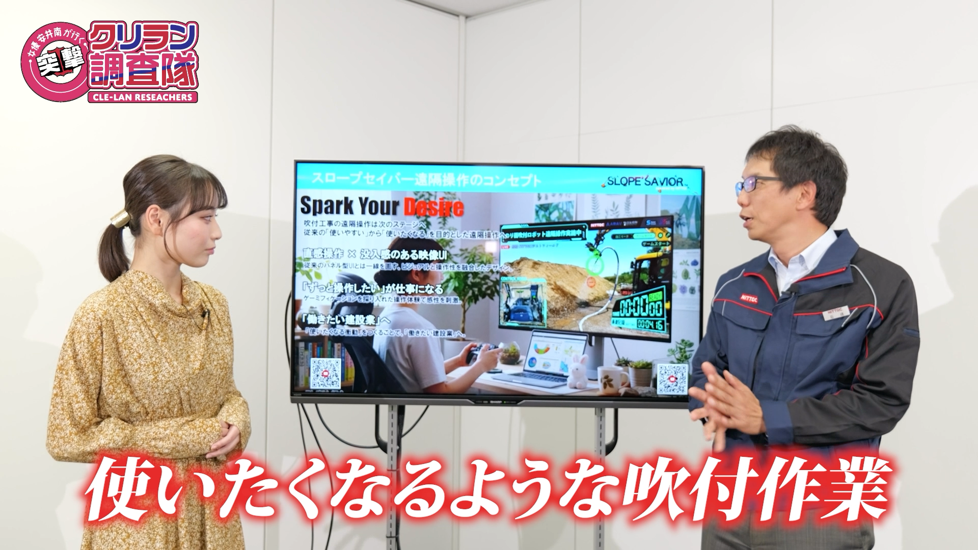 作業員だけでなく「誰でも、どこからでも、手軽に」をコンセプトに考えられた「スロープセイバー」の遠隔操作技術について紹介しています!