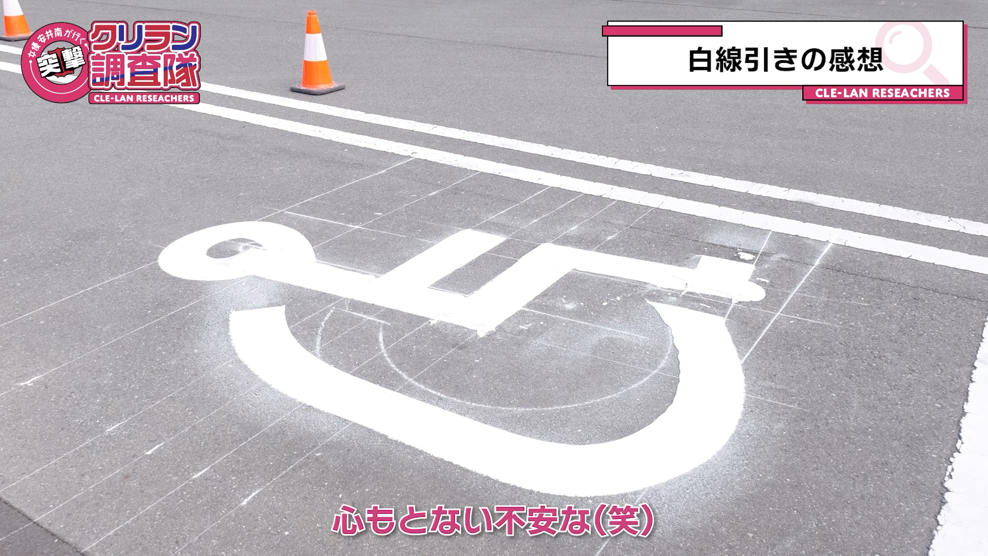 工事部・山本さんに教えてもらいながら、駐車場の車椅子マークにチャレンジ!